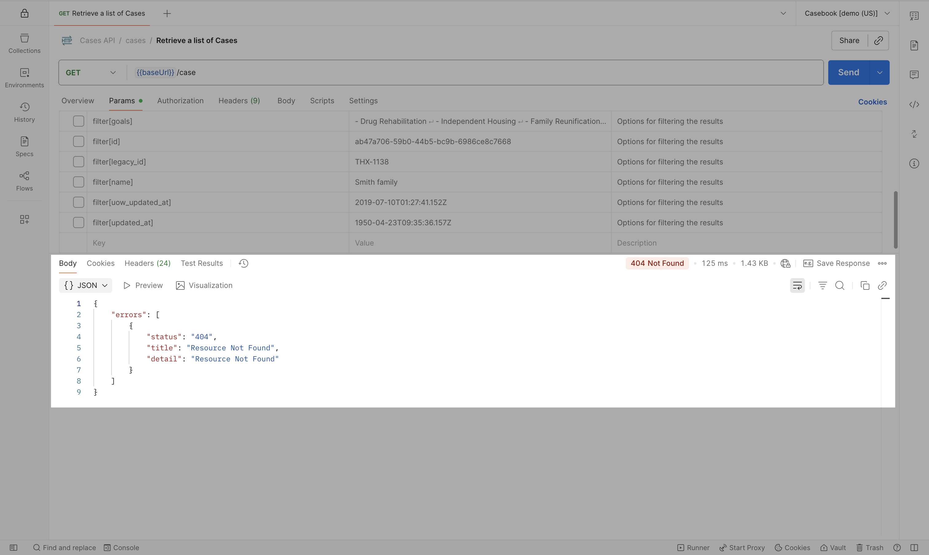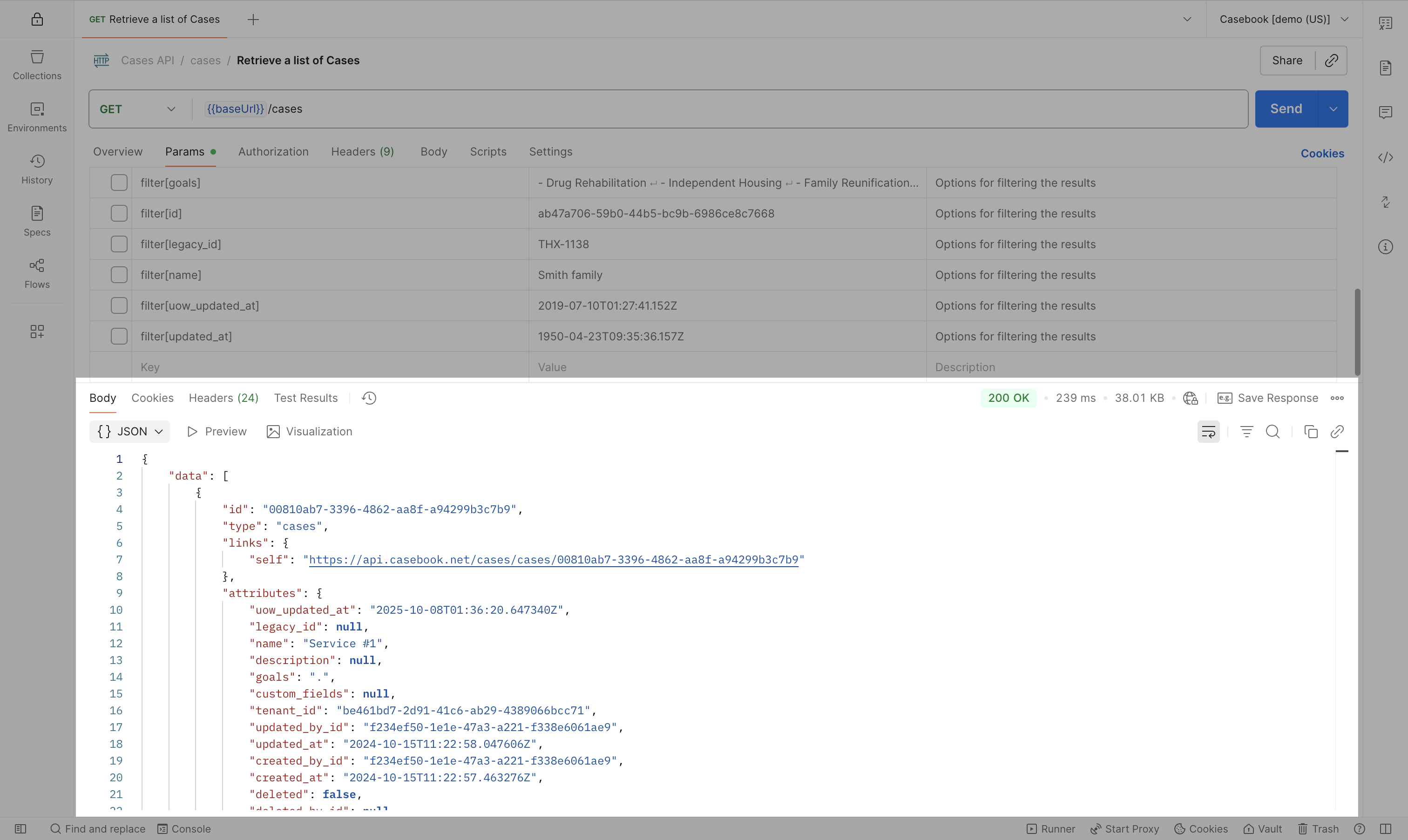 Next, use these forked APIs to test requests to the Casebook API in Postman: