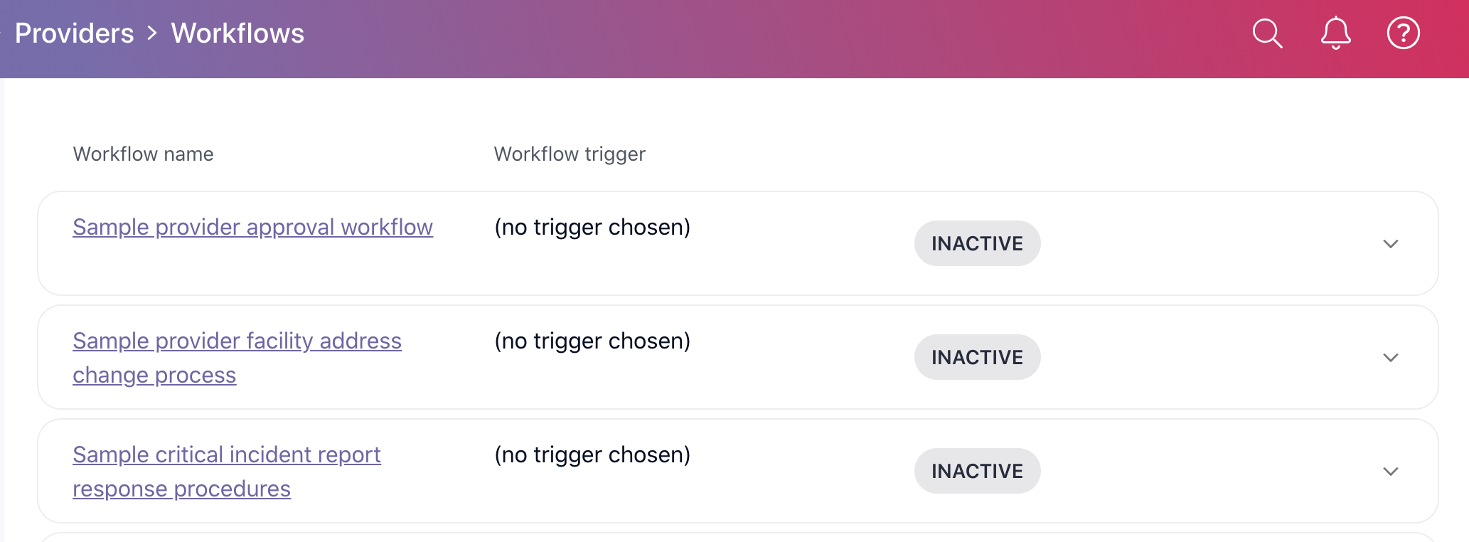 1. Workflows are triggered based on the creation or update of an enumerated value that is one-to-one with the provider entity.