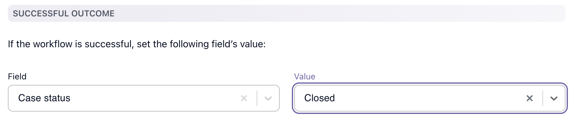For example, if the outcome of the workflow is successful, the case status is updated to closed.