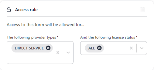 - If you say no, you will be asked to create an access rule for the form (i.e. which provider type(s) and which license statuses).