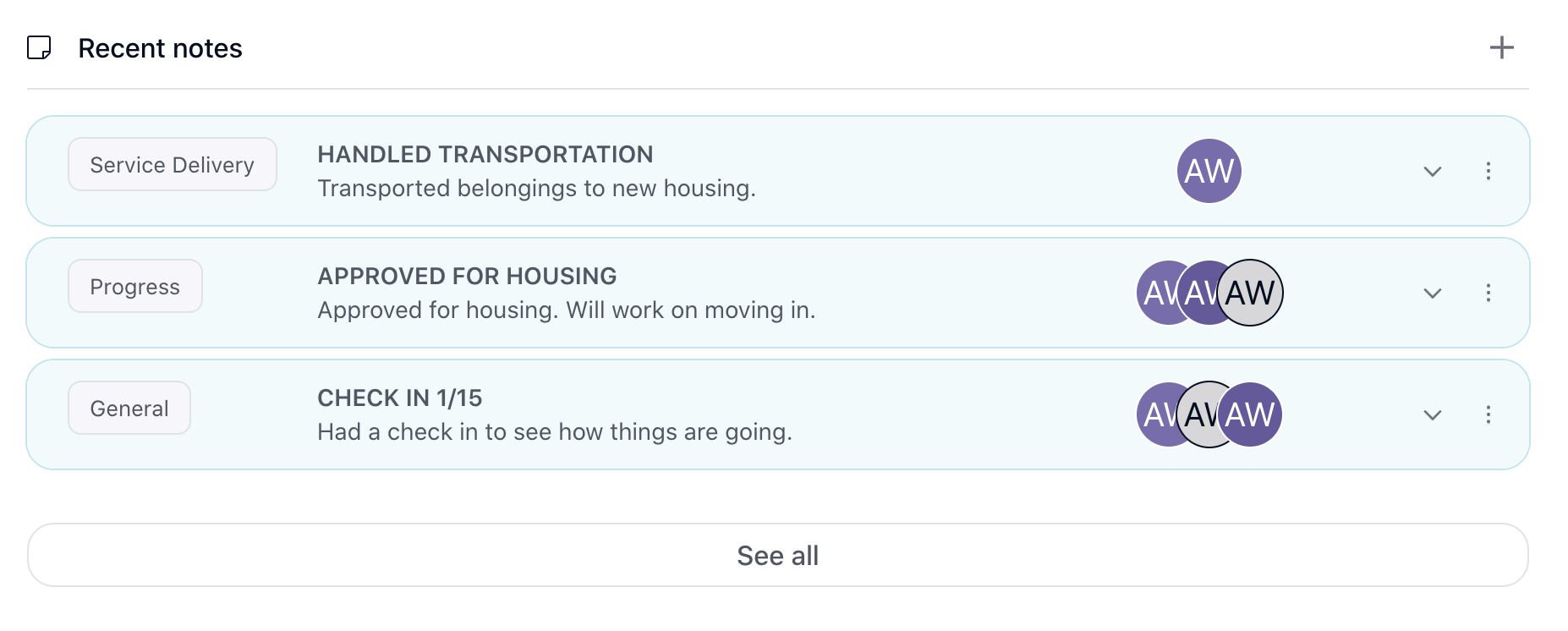 Keeping workers organized, well-informed, and prepared for future planning, notes play a crucial role in enhancing client outcomes. They are an essential component of daily activities for staff and can be found in cb Engage, cb Intake.