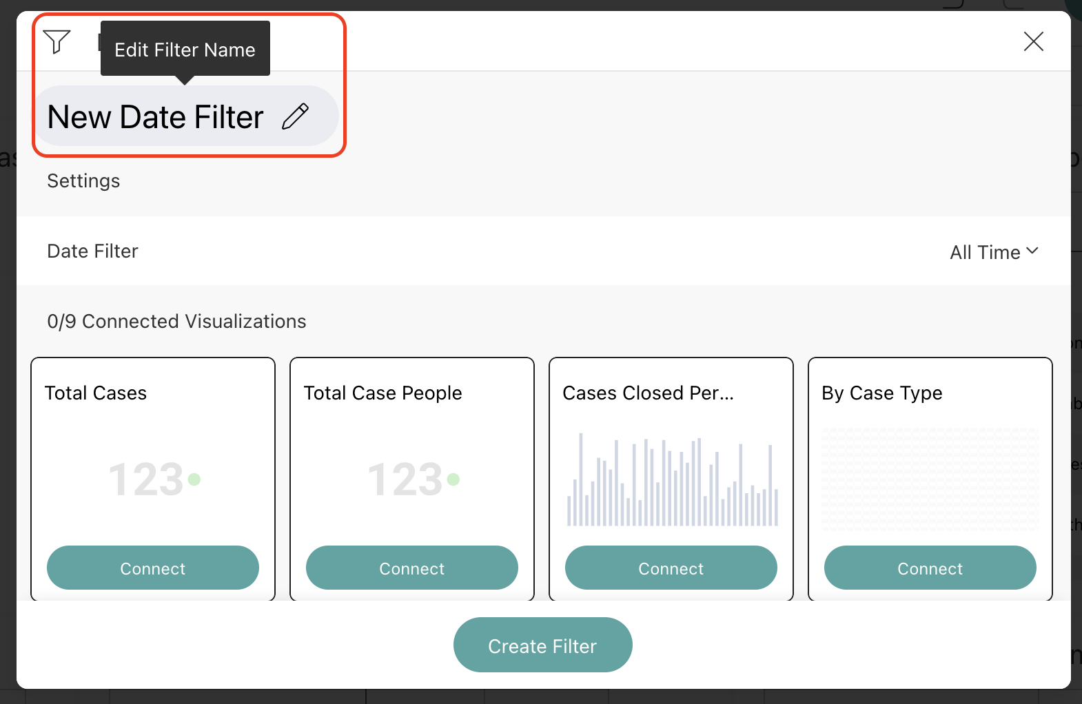 - Begin by adding the name of your new filter by selecting the pencil icon.
