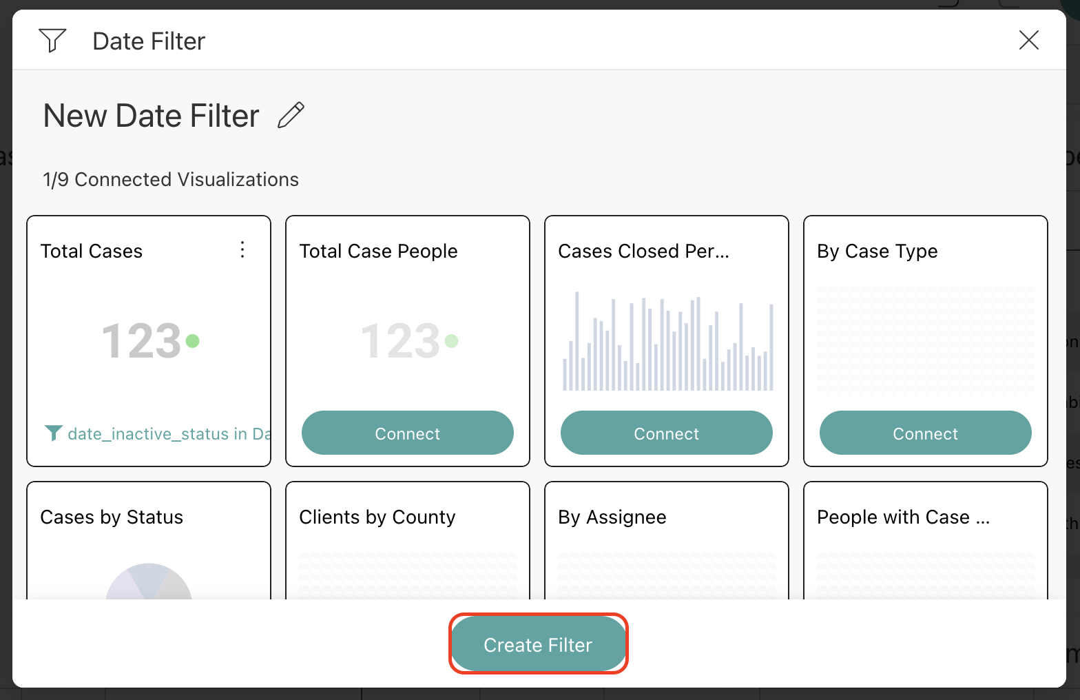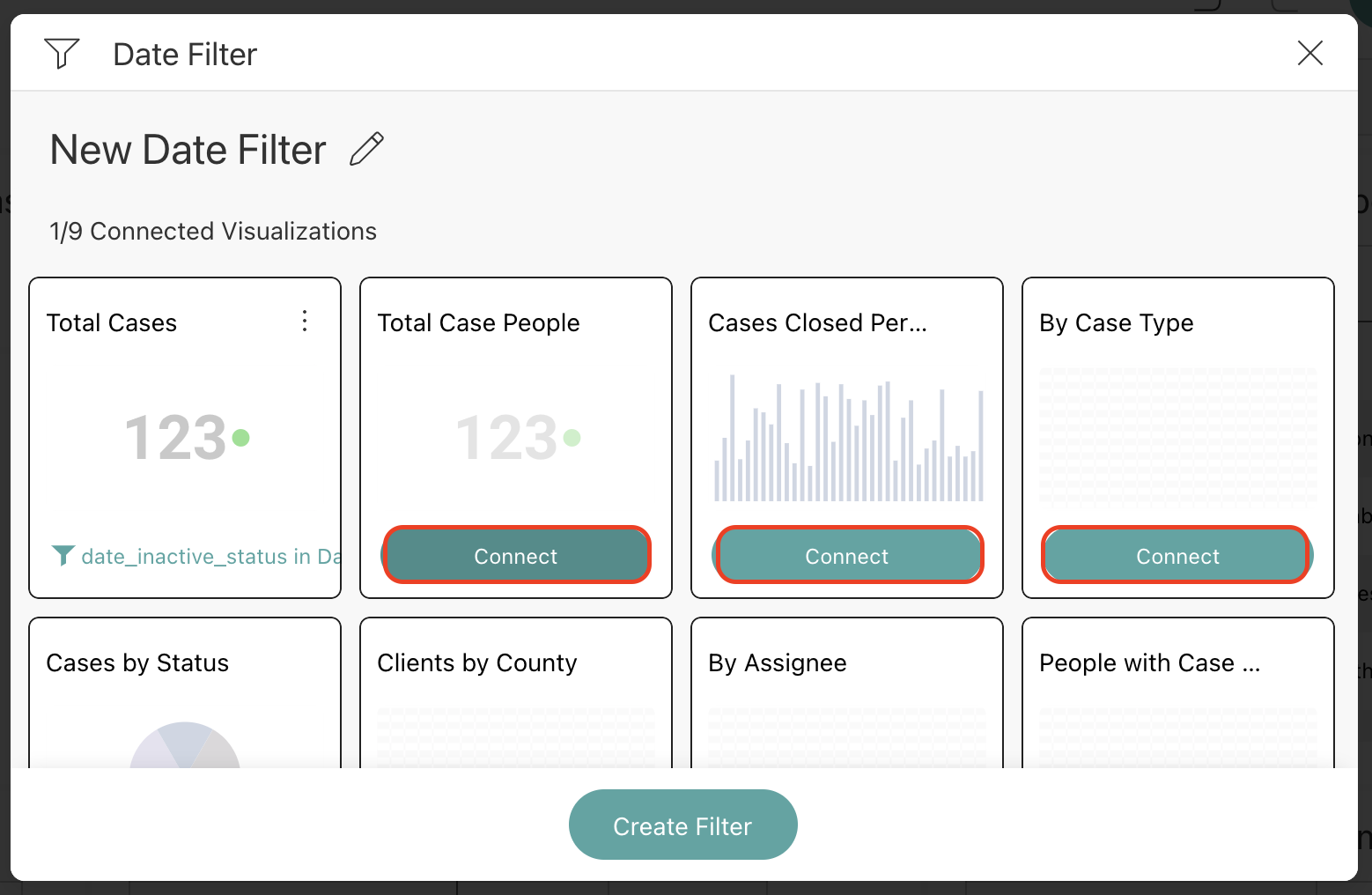 - Determine which specific reports you wish to connect to this data filter and select Connect.
