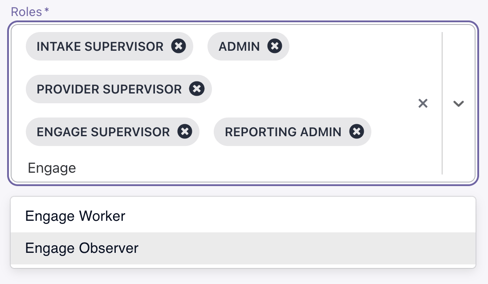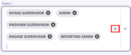 To remove all the roles, click on the x to the right, and all roles will be removed.