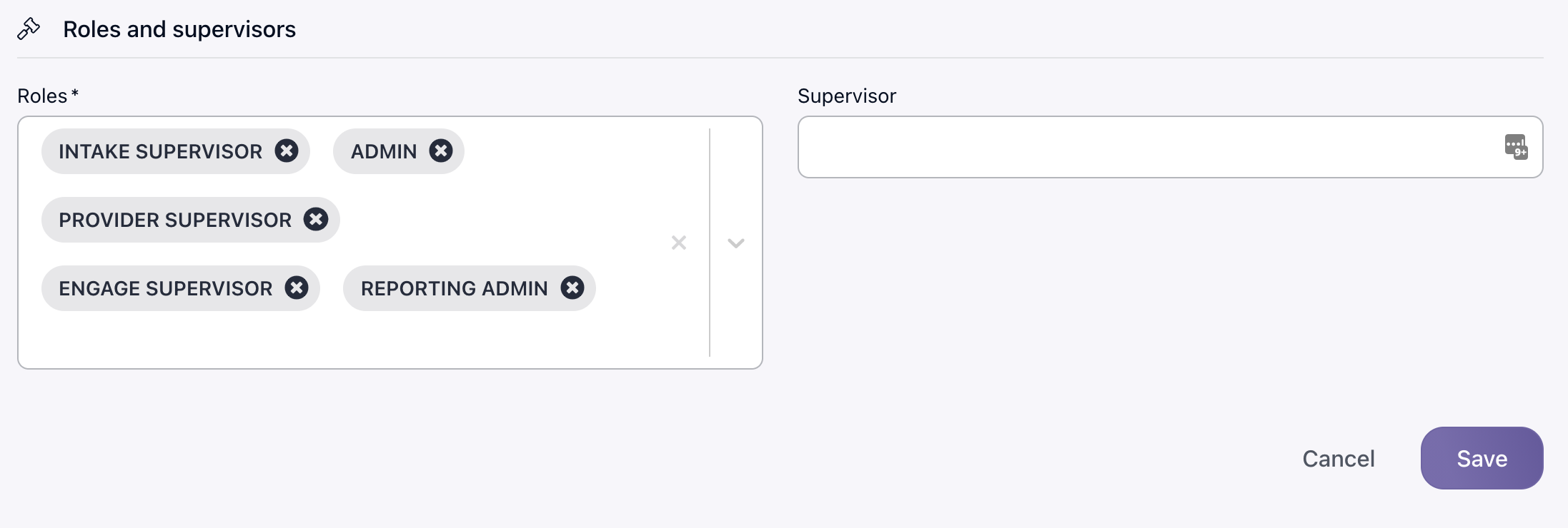 If the user has only one supervisor or no supervisor, you can remove a role by clicking on the x next to name of the role then click save to apply changes. Alternatively, you can click on Cancel to discard the changes.