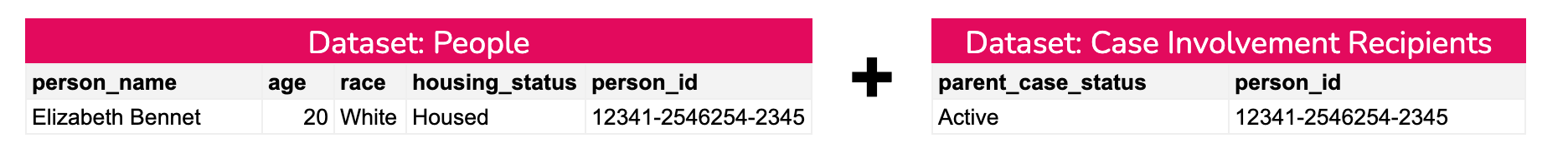 If you see fields in two datasets that you want to see together, then you need to join a dataset. So, you want to see all the people on active cases? That means you want to see People and Cases data together, so that’s a join!