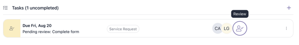 - Note: If the person record does not have an email address, then you'll receive an error when adding the task. You will need to make changes to the person record, then refresh the intake page for those changes to apply.